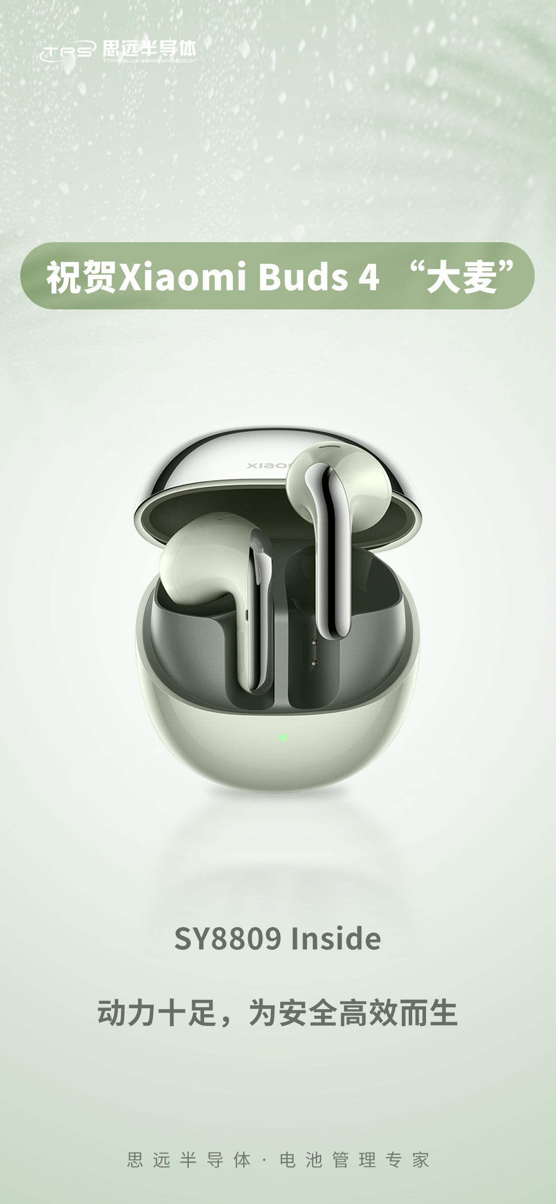 Xiaomi Buds 4重磅面世,內置思遠半導體電源管理解決方案